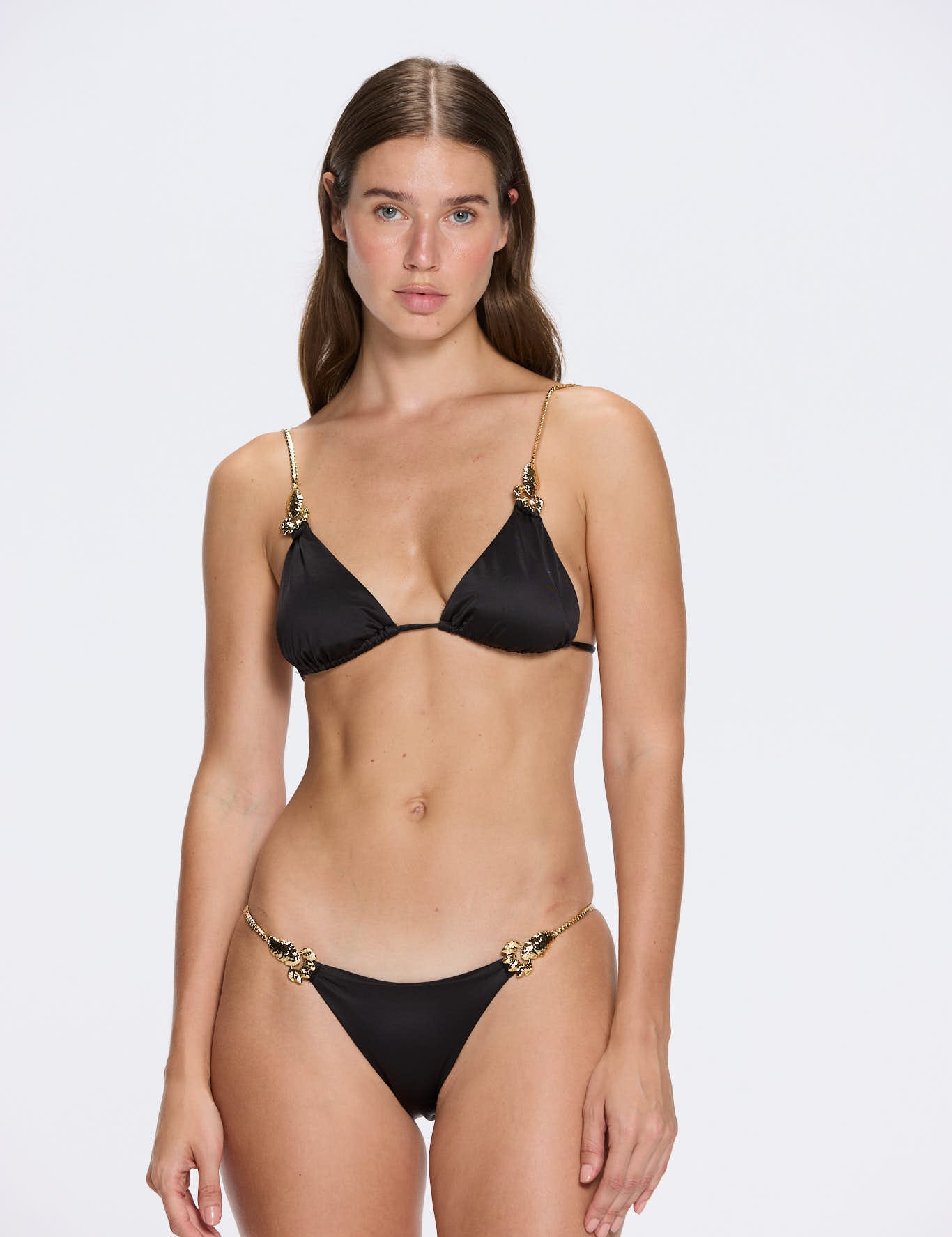 Selena Black Satin Bikini Top