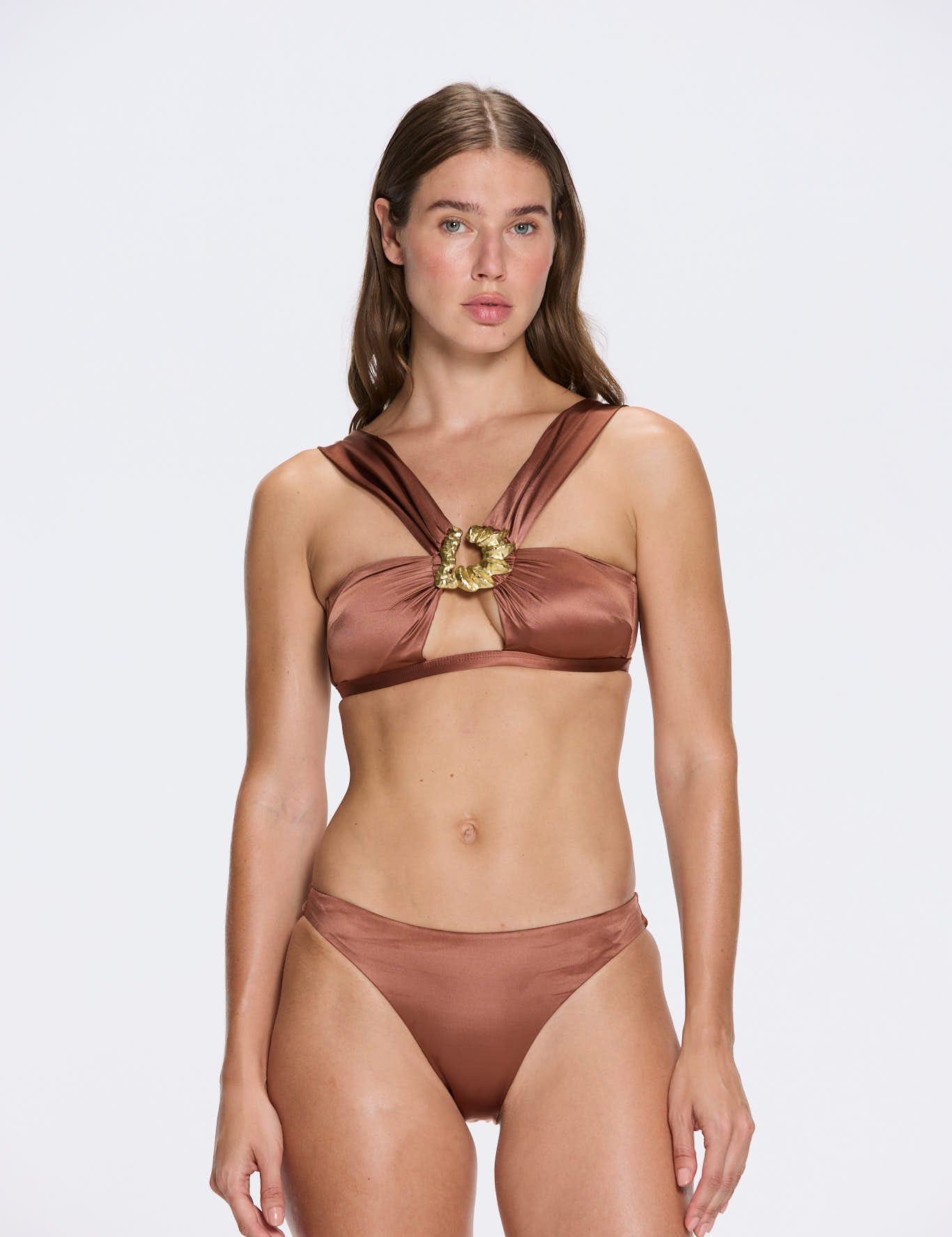 Astrid Brown Satin Bikini Top