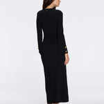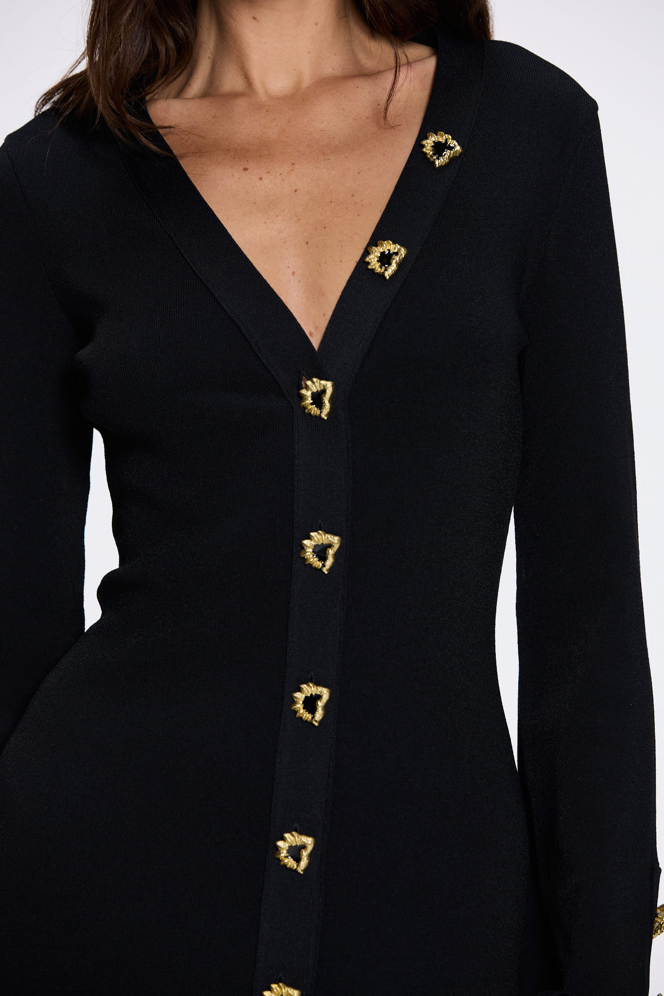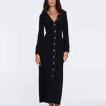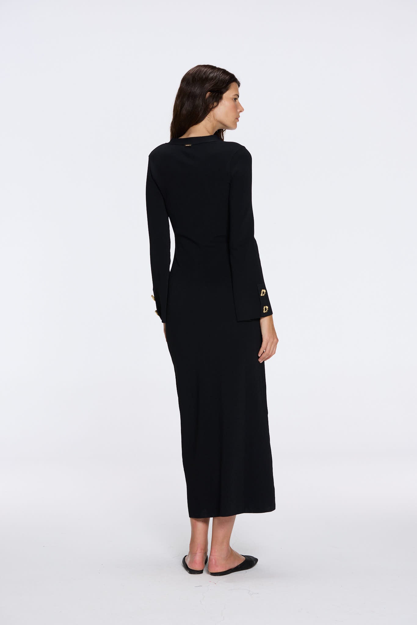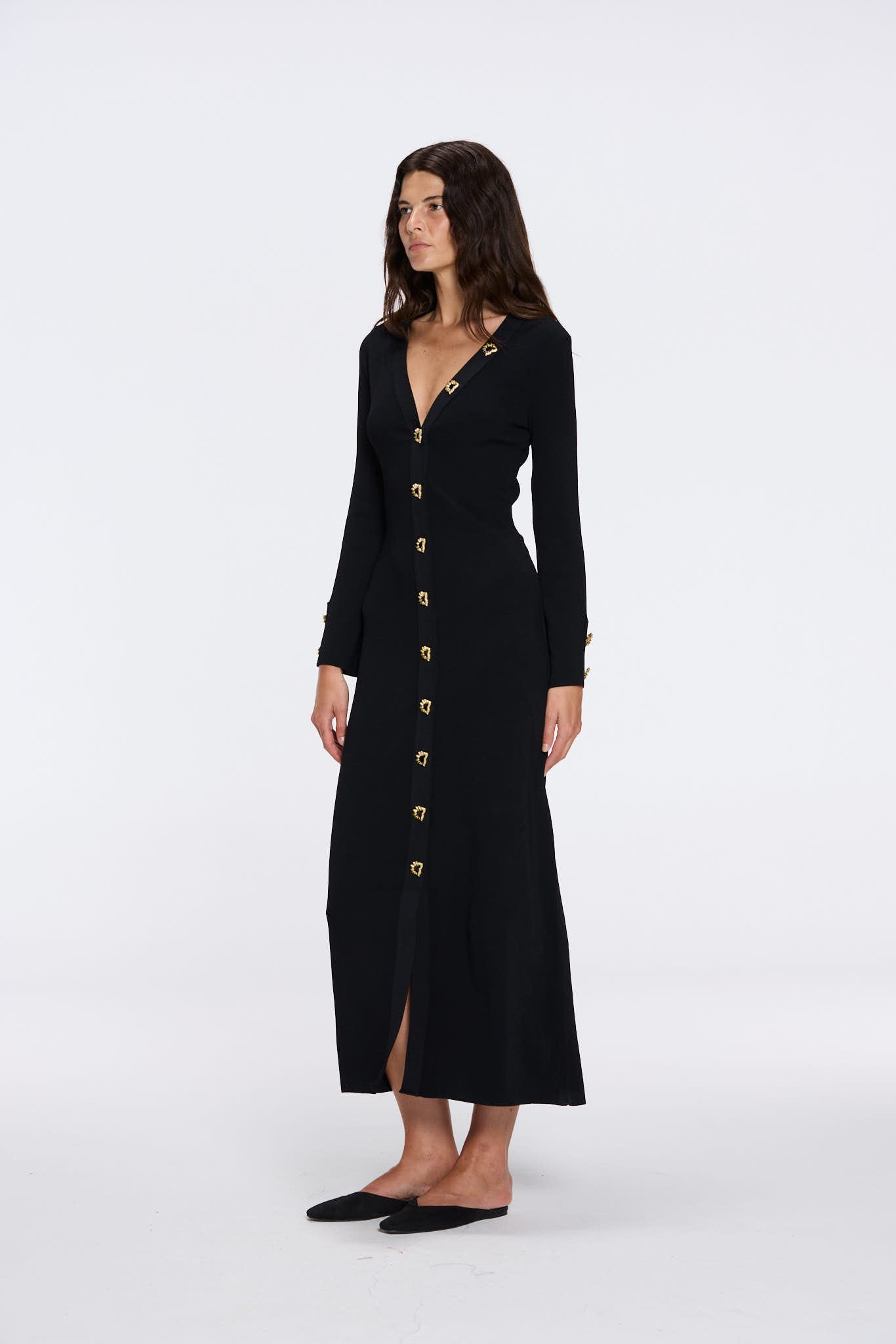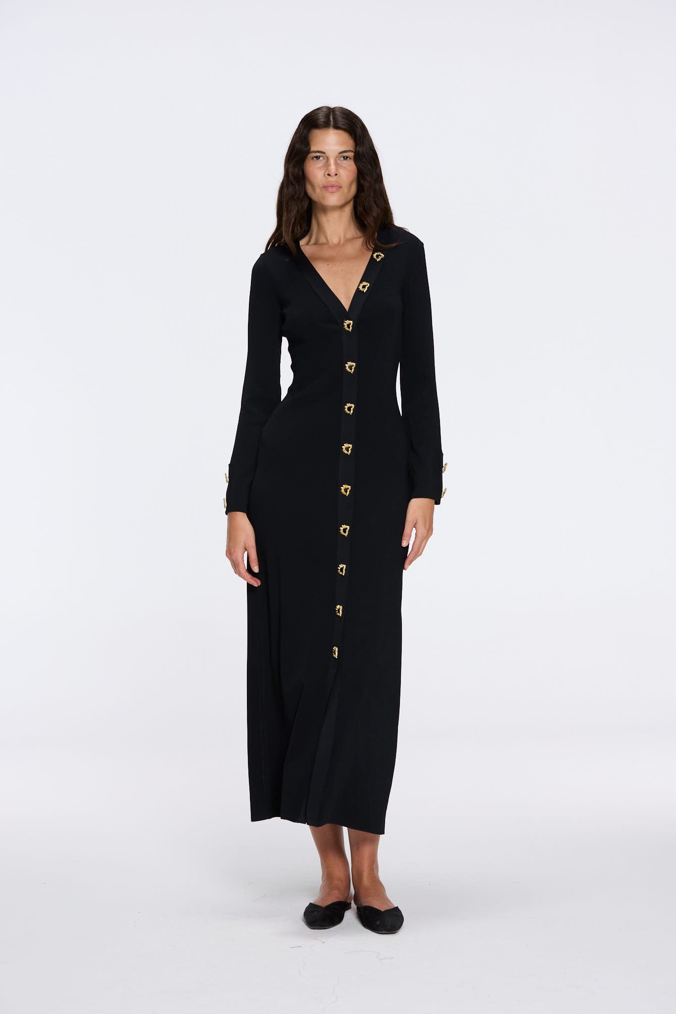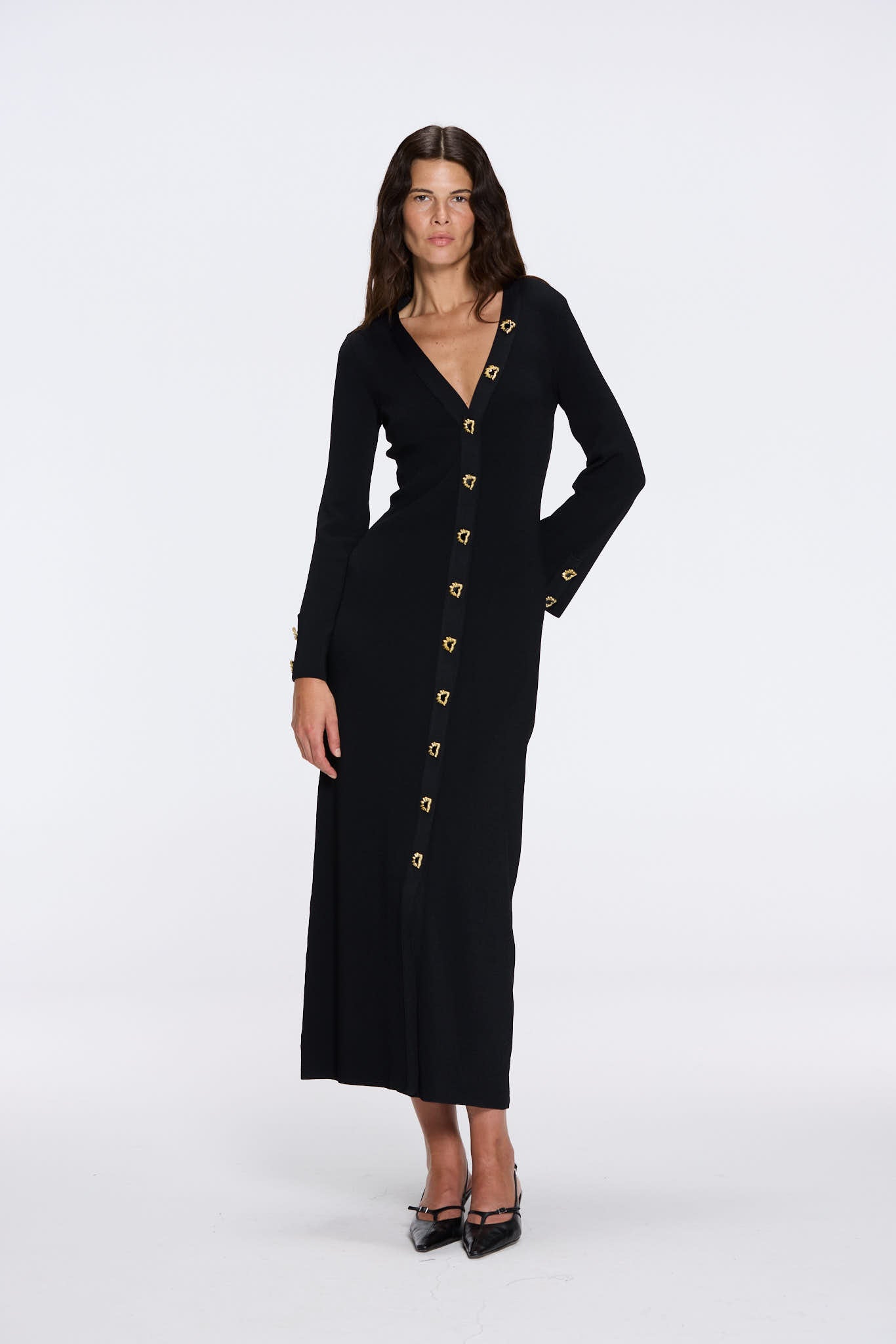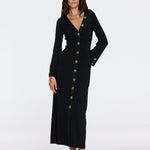 Knitted, Long Sleeves, Ankle Length, V neckline, Gold Button Details